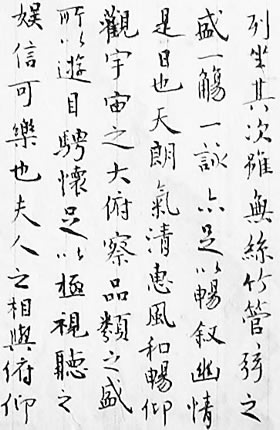 她同时在准备一个国外书展,其20多年所书精品都归拢到了一块。打开那一米见方的大册页,记者看到了令张中行惊叹的“张秀小楷”,其中一幅录王羲之《兰亭序》,结体紧密,遒劲精致,清秀飘逸,“这件作品得了好多一等奖”,她笑着说。
