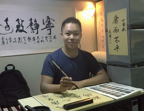 在躁而不安的世界里,书法让我心平和;在悠悠的青春岁月中,书法使我心快乐;在笔尖与纸面上的,原来是一生的哲理。人生反复无常,变化多端,我叫王雄辉,今年19岁,一年前的我还只是一个喜欢玩游戏的少年,和大多数大学生一样,惶惶而不安。现在的我对未来有了目标,对人生有了向往,每天沉溺于笔墨,是书法让我感受到了超越任何事物的美丽。 2017年的冬天,机缘巧合的我认识了江军文老师,在他的指导下开始接触书法,渐渐的,我明白了写字与书法的差距,并且坚持临摹古贴,书法带给我的平和让我找到了内心的归属感,每天乐此不疲的练习着。同年夏月,高泓老师的指导让我明白了我的缺点,并引导着我的方向,一次又一次的提高,让我更加坚定了我的梦想。