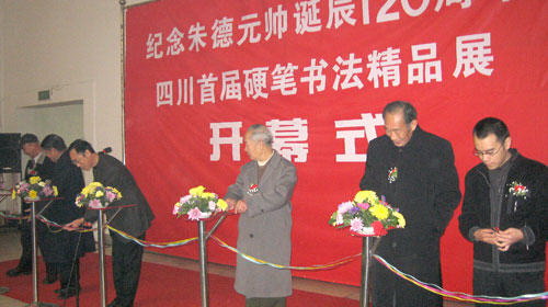 由四川省硬笔书法协会,四川长嘉房地产策划有限公司共同举办的“纪念朱德同元帅诞辰120周年”四川省首届硬笔书法展在四川省美术馆隆重开幕!