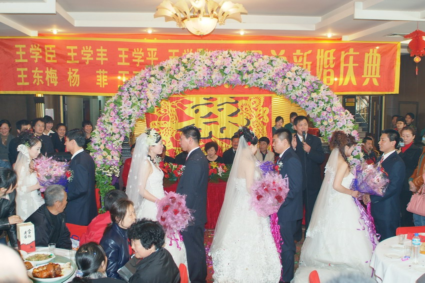 | 【本站讯】 前一段时间在全国成为热点的四兄弟同时举行婚礼,原来是中宫格发明人王学臣四兄弟。 4月22日,中宫格五天练字法专利发明人王学臣与王东梅女士;二弟王学丰与杨菲女士;三弟王学平与王玉婷女士;四弟王学刚与郭云飞女士在哈尔滨市春晖酒店共同举行了新婚庆典。哈尔滨市硬笔书法家协会副主席秘书长刁俊峰做证婚人。新华社、中央电视台马斌读报节目、黑龙江电视台、哈尔滨电视台、《新晚报》等多家媒体进行了跟踪报导。