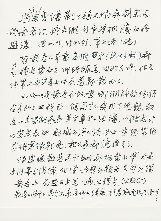 散老的草书每个字(绝大多数)呈同一种走势而立、仰卧稍息,自始至终,相互映带只是身上的衣着飘散而已。