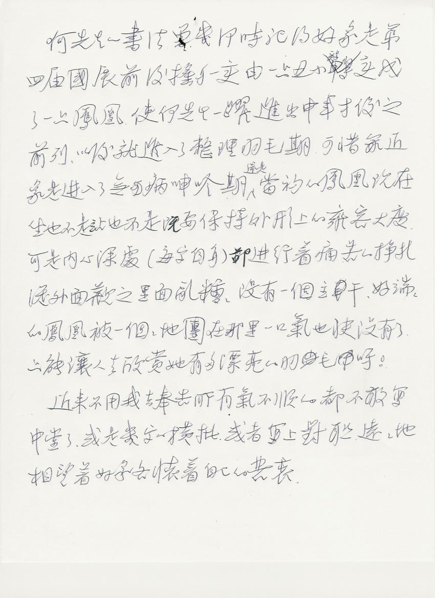何先生的书法曾几何时记得好象是第四届国展前后摇身一变由一只丑小鸡变成了一只凤凰,使何先生一跃进出中年才俊之前列,以后就进入了整理羽毛期,可惜最近象是进入了无病呻吟期,还是当初凤凰现在坐也不是站也不是,既要保持外形上的雍容大度,可是内心深处(每字自身)却进行着痛苦的挣扎。从外面观之里面乱糟糟,没有一个主干,好端端的凤凰被一个个地团在那里,一口气也快没有了,只能让人去欣赏她有多漂亮的羽毛呀!