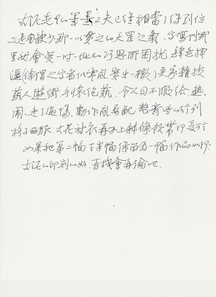 古泥先生的笔墨工夫已经相当了得到位,只是缺少那一以贯之的天罡之气,字写到哪里就会受一时一地的巧思所困扰,肆意挥洒(徐渭之字看似零乱实出一辙)更象杂技艺人游街,各怀绝艺,令人目不暇接,热热闹闹的走了过场,动作乱要配整齐些的行列格子西服,大花衬衣再加上斜条领带何美可言。