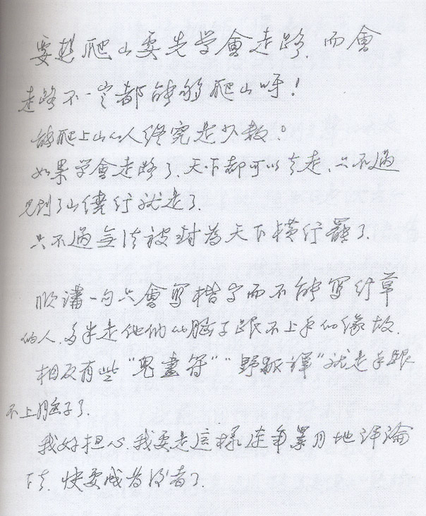 顺讲一句,只会写楷字而不能写行草的人,多半是他们的脑子跟不上手的缘故。