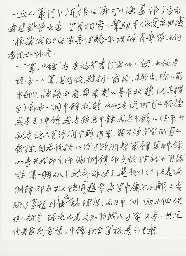 一丘的笔法分析的很正统可以涵盖很多方面,我想对学书者一定有相当的帮助,本人也受益匪浅,根据我自己的习书经验和理解,有几点不同看法和补充: