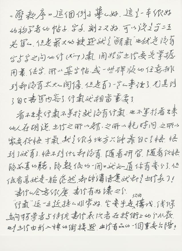 看不出来行气就不等于就没有行气,也不等于看出来的人在胡说。书法之所以难,之所以耗时间,之所以需要领悟,才气。就是很多地方只能靠自己去悟。悟到了就有了,悟不到什么都没有。随着研习随着领悟,段数高的听听段数低的一开口就知道你有几分了,但是低看高就是一脸的范然,都能讲清楚就都是书法家了!