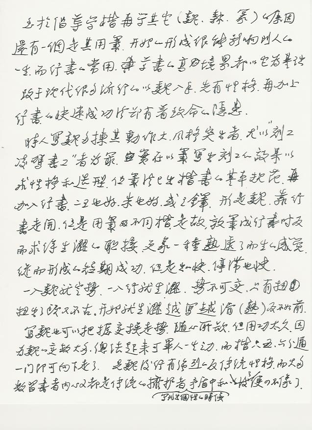 至于倡导先学楷再学其它(魏、隶、篆)的原因还有一个是其用笔,开始的形成很能影响到人的一生。而行书的常用,草书的高境界都以它为基础,致于现代很多流行的魏入手,先有性格,再加上行书的快速成功法却有着致命的隐患。