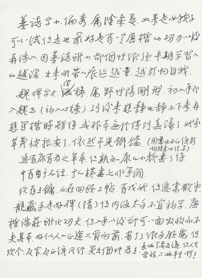 魏碑字大,浑穆,属阳刚型。初入手即入魏书(初入心燥),到后来想静也静不下来,再想写楷时难得或根本无法得到真谛了,就象草莽被招安,依然吊儿郎当(用笔也不正统,影响将来的行、草)。