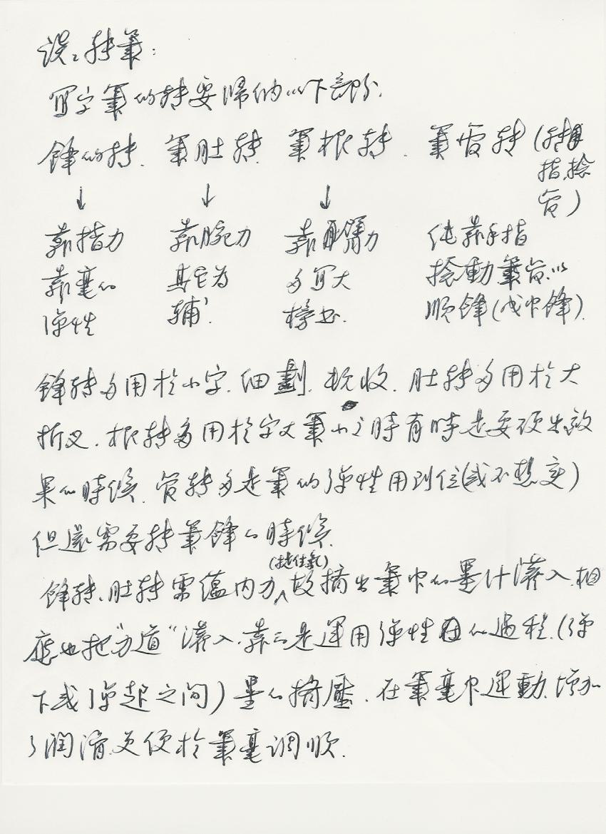 转管我是幼时老师那里见到,他用长锋写草,墨涸或到一回笔力不逮时捻一下管,(当然不象沈鹏先生那样除了饱墨一下笔,还象有笔法,剩下来的部分就都在捻了)转管多在其它转法力有不逮时用,绝不是主要用法,高手用笔已成习惯,到谈转的时候自然而蹴。