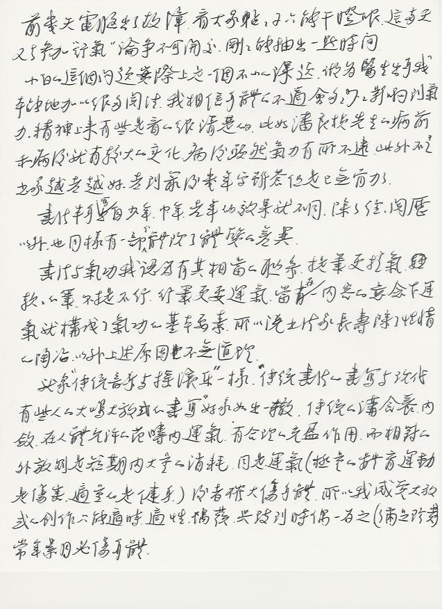 小白的这个问题实际是上一个不小的课题,做为医生出身我本能地加以很多关注。我相信身体的不适合多多少少影响气力,精神上来,有些是看的很清楚的,比如潘良桢先生的病前和病后就有较大的变化。病后虽然气力有所不逮,此外不是书家越老越好,老到最后几年字虽苍但是已无骨力了。