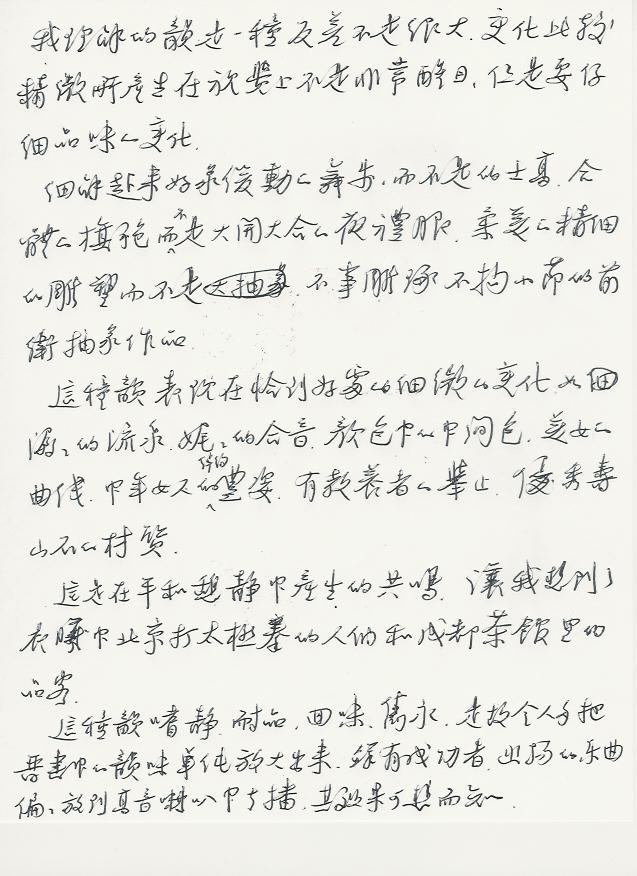 这是在平和憩静中产生的共鸣,让我想到了晨曦中北京打大极拳的人们和成都茶馆里的客。