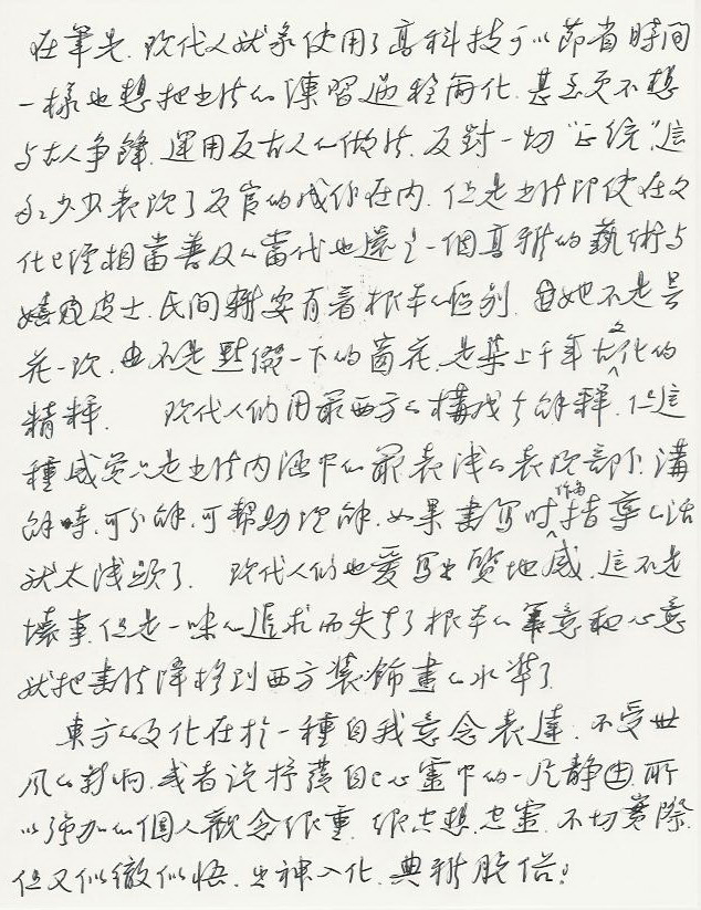 东方的文化在于一种自我意念表达,不受世风的影响,或者说抒发自己心灵中的一片静,所以强加的个人观念很重,很空想,不切实际,但又似徹似悟,出神入化,典雅脱俗。