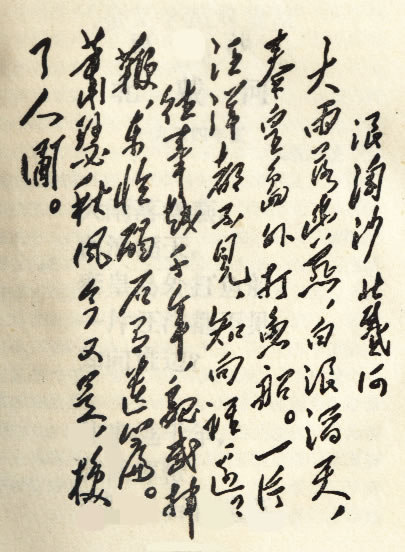 大雨落幽燕,白浪滔天,秦皇岛外打鱼船。一片汪洋都不见,知向谁边? 往事越千年,魏武挥鞭,东临碣石有遗篇。萧瑟秋风今又是,换了人间。 1954夏