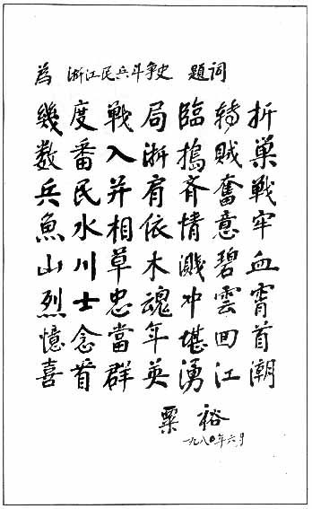 【粟裕】(1907-1984)湖南会同人。原任解放军总参谋长,国防部副部长,全国人民代表大会常务委员会副委员长。1955年被授予大将军衔。