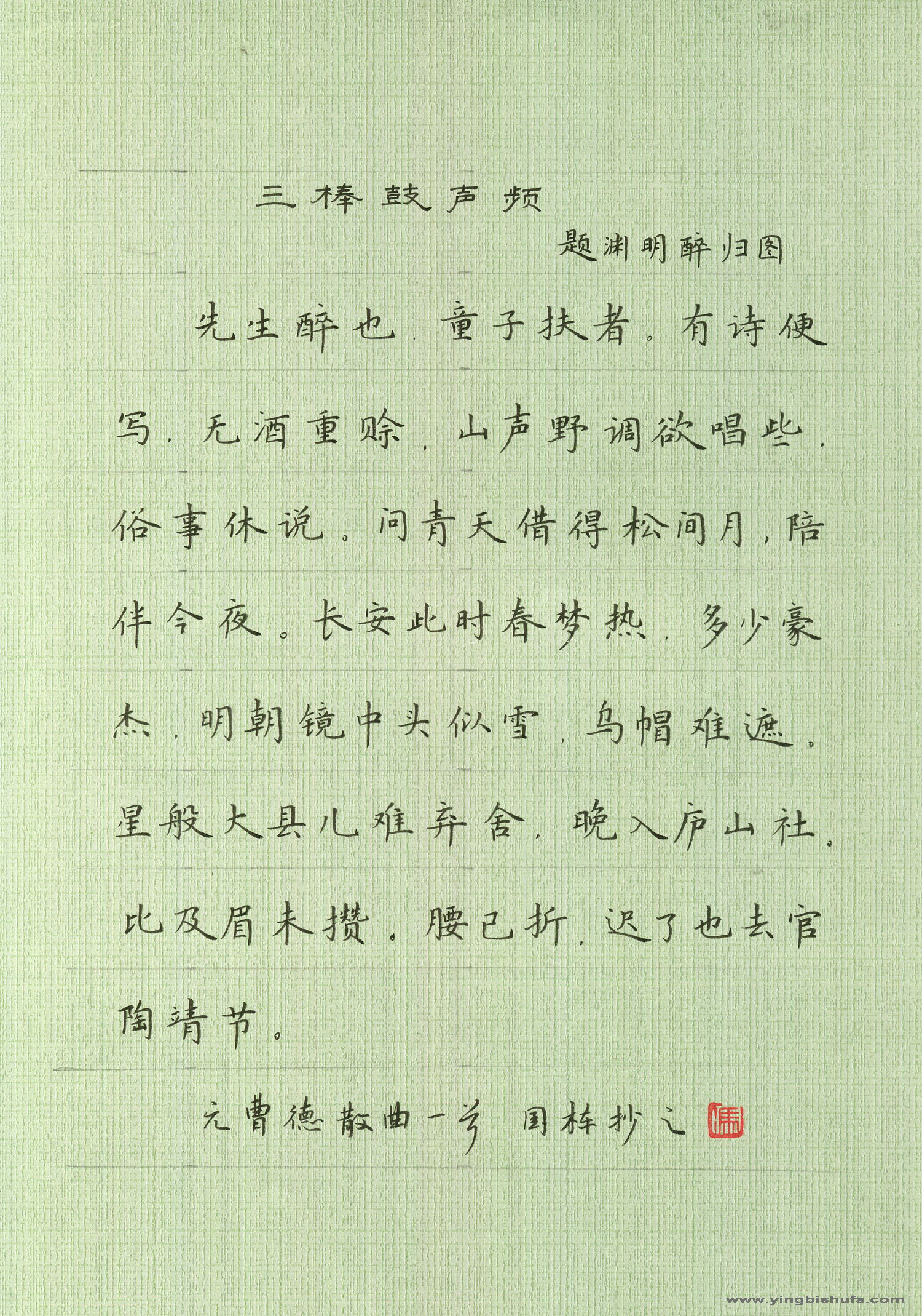 > 冯国栋 [楷书 元曹德散曲一首]