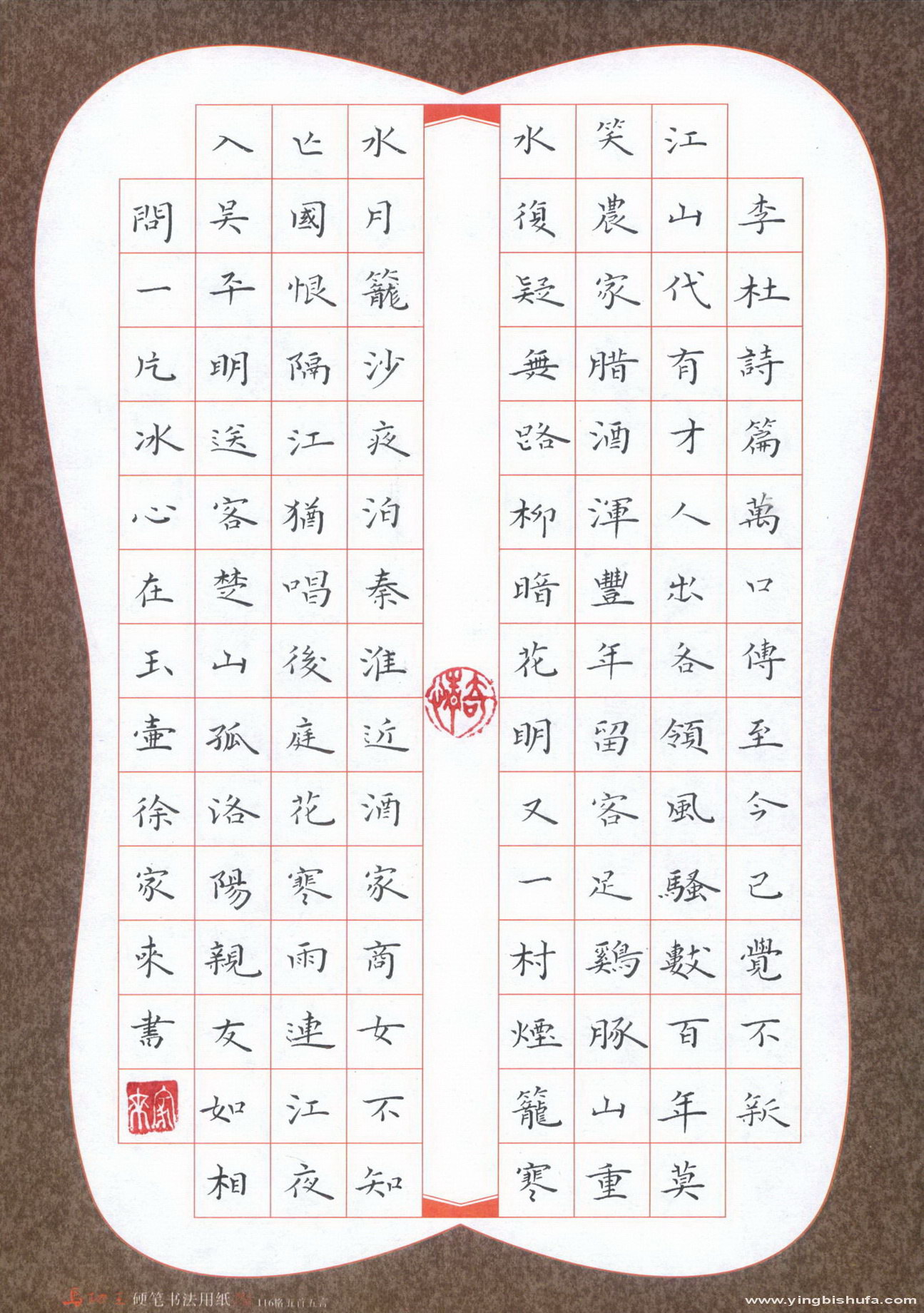 书写用材:钢笔、马功玉硬笔书法专用纸