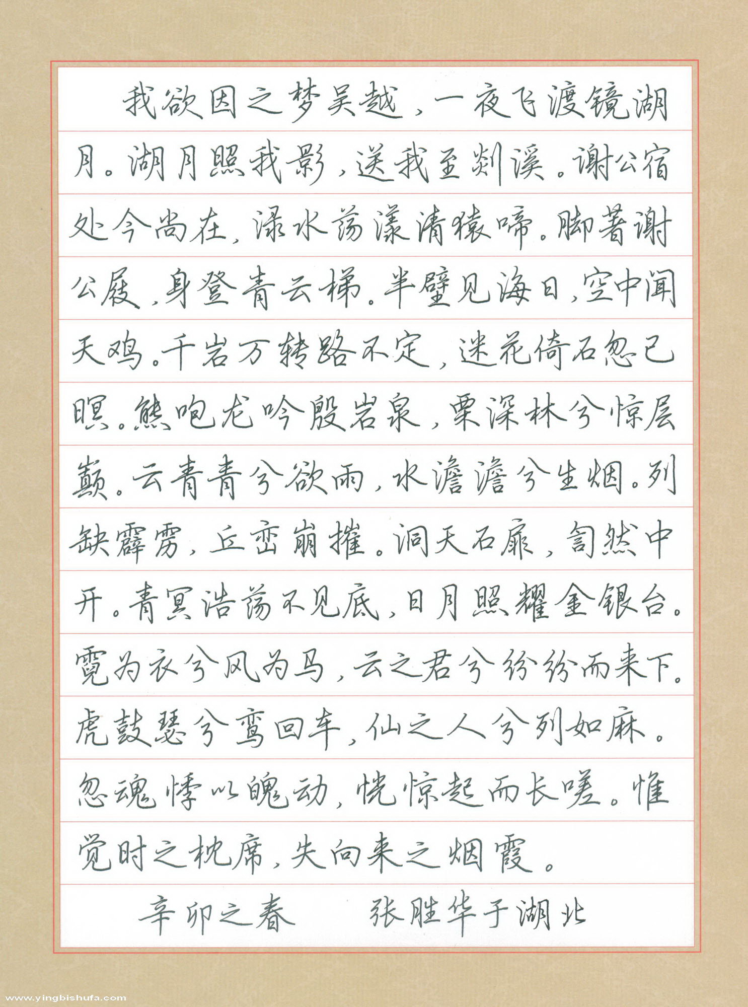 > 张胜华 [行楷 李白诗梦游天姥吟留别节抄]