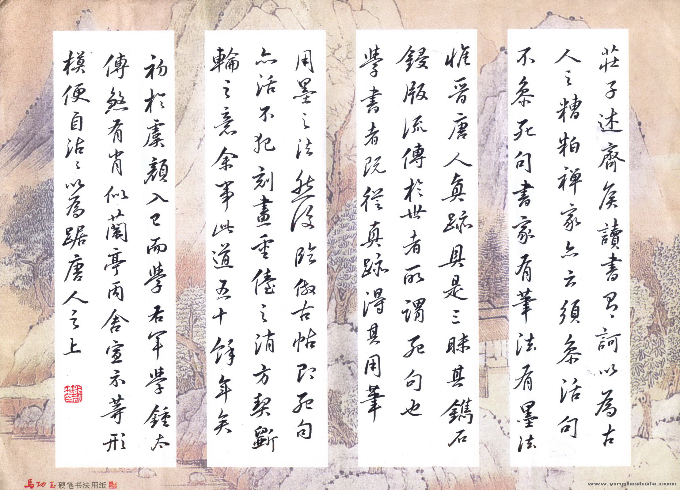 书写用材:中柏笔、马功玉硬笔书法专用纸
