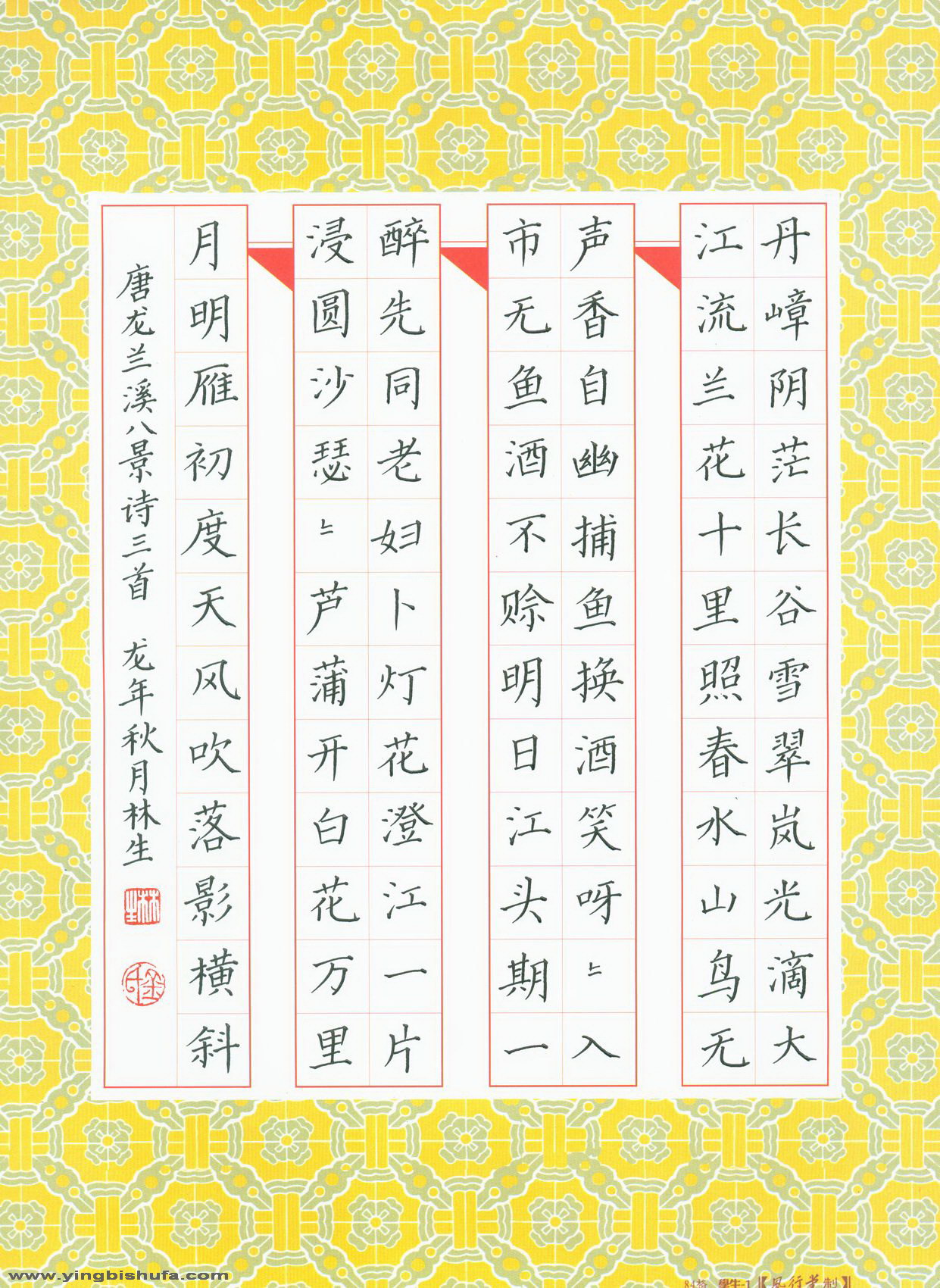 金林生硬笔楷书唐龙兰溪八景诗三首