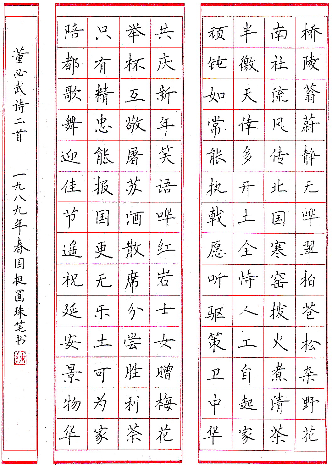 陈国挺圆珠笔录董必武诗二首(来源:《钢笔圆珠笔正楷字帖》)