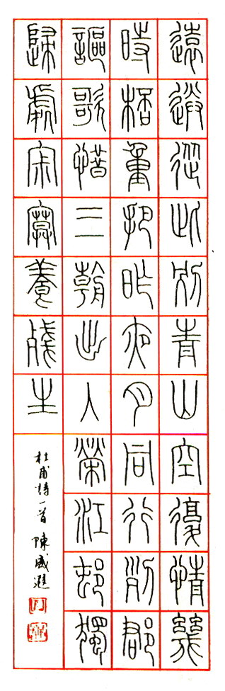 陈威遐硬笔篆书杜甫诗一首(来源:《中国钢笔书法杂志作品精选》)