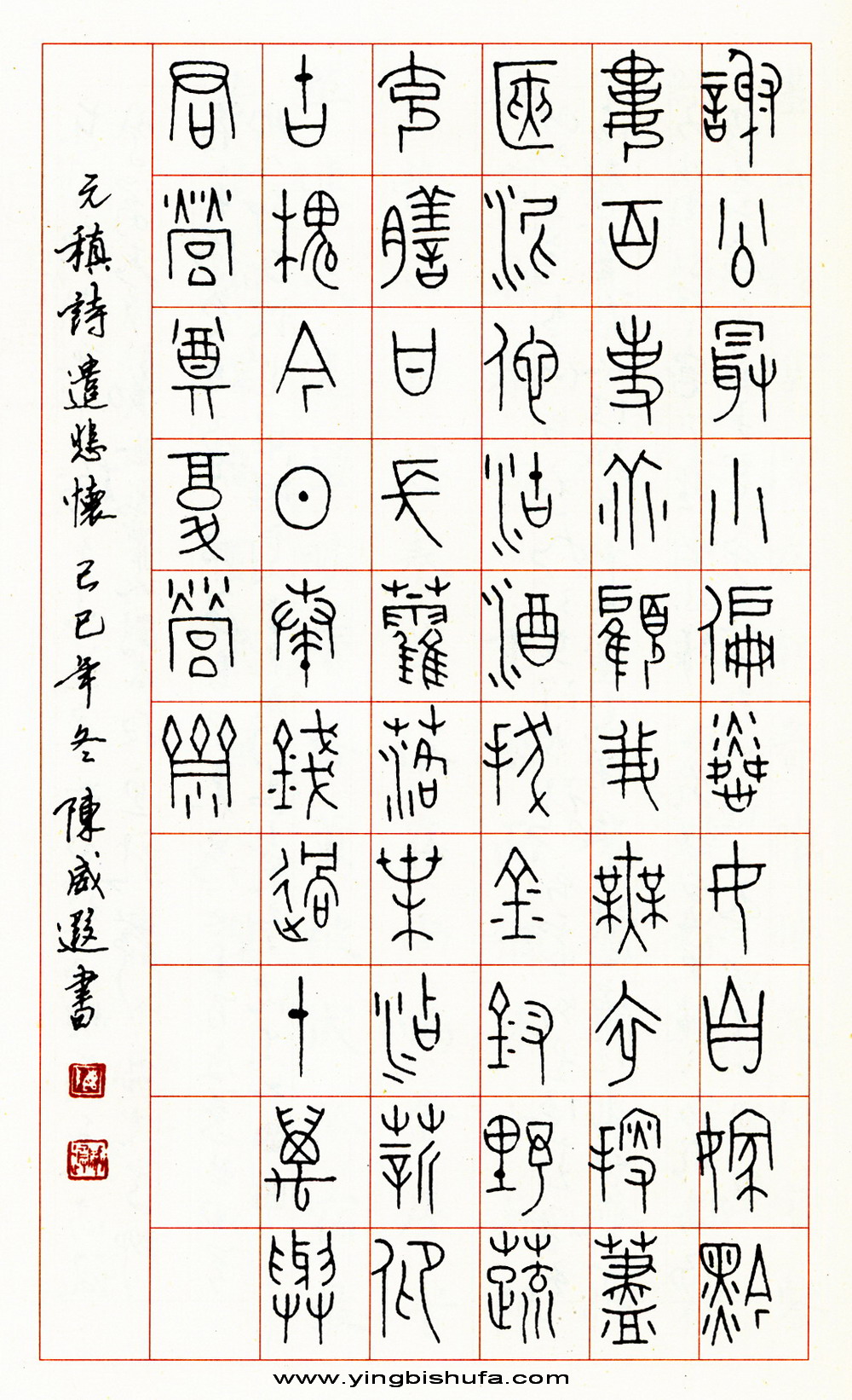 陈威遐硬笔篆书元稹诗遣悲怀(来源:《名人名家硬笔书法作品集》)