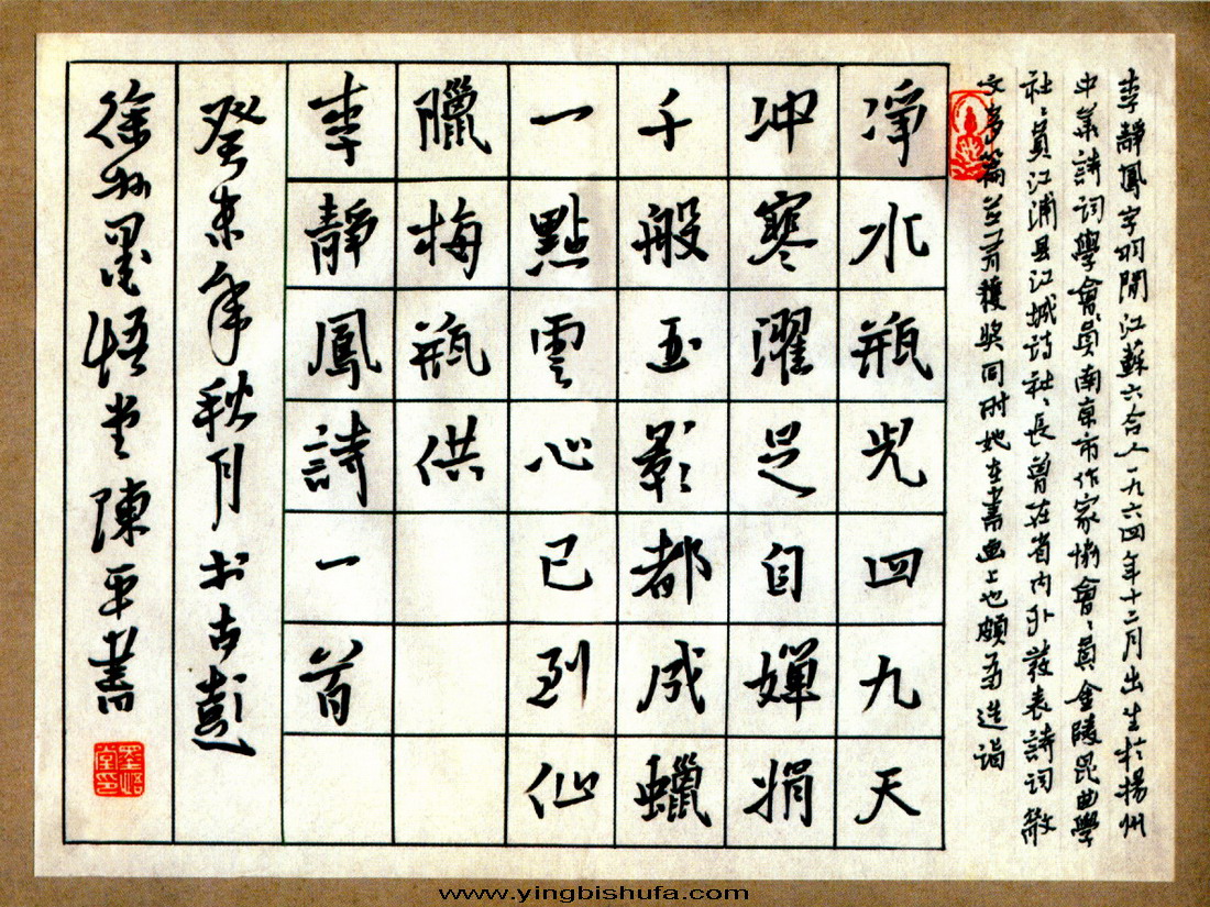 陈平硬笔行书李静凤诗一首(来源:《中国硬笔书法家书羽闲诗词联作品集》)