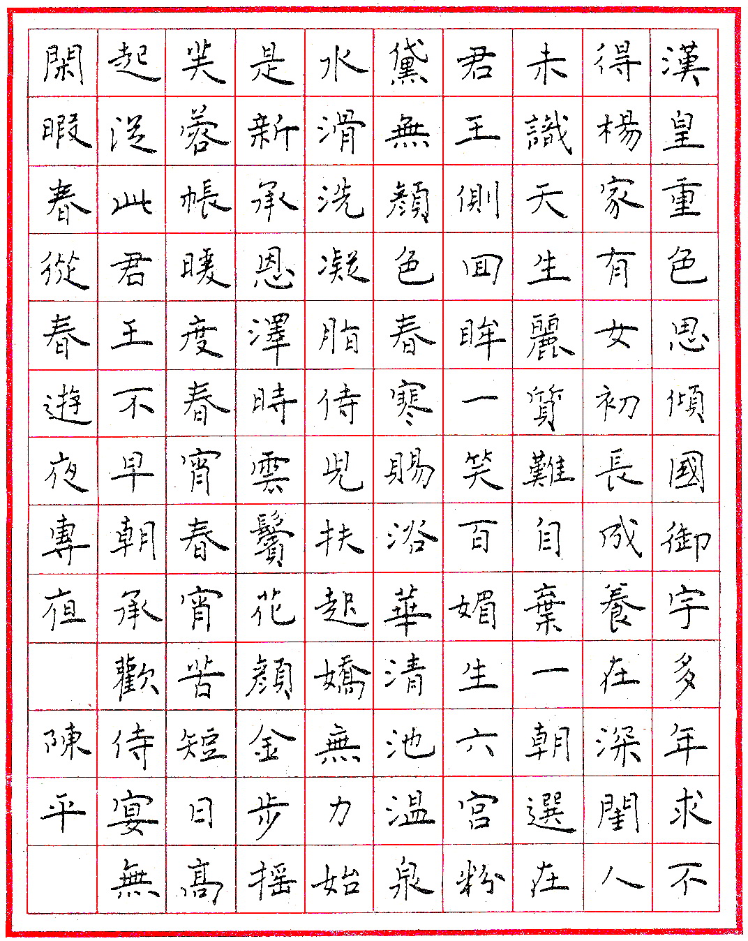 陈平钢笔节录白居易《长恨歌》(来源:《钢笔圆珠笔正楷字帖》)