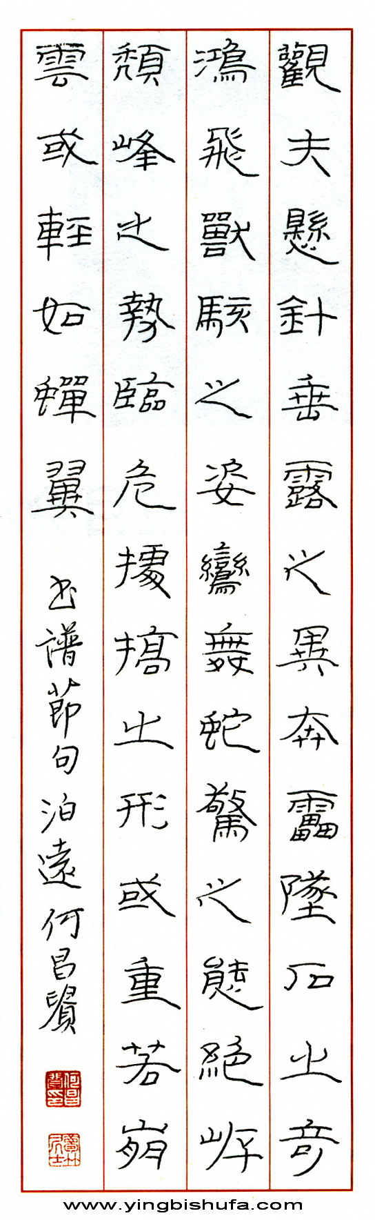 何昌贵硬笔隶书书谱节句(来源:《中国钢笔书法杂志》)