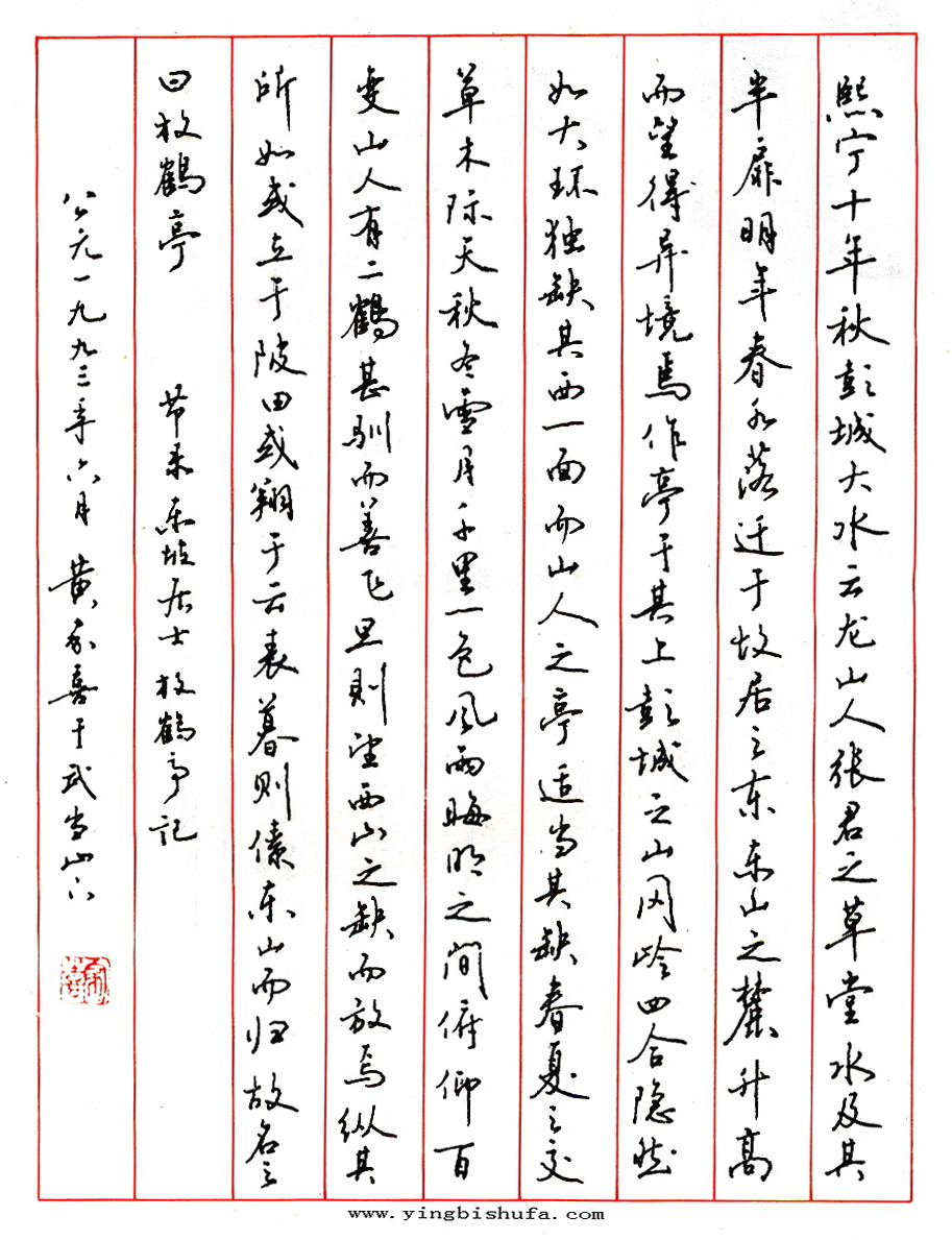 黄家喜硬笔行书节录苏东坡放鹤亭记(来源:《中国钢笔书法十年大观》)