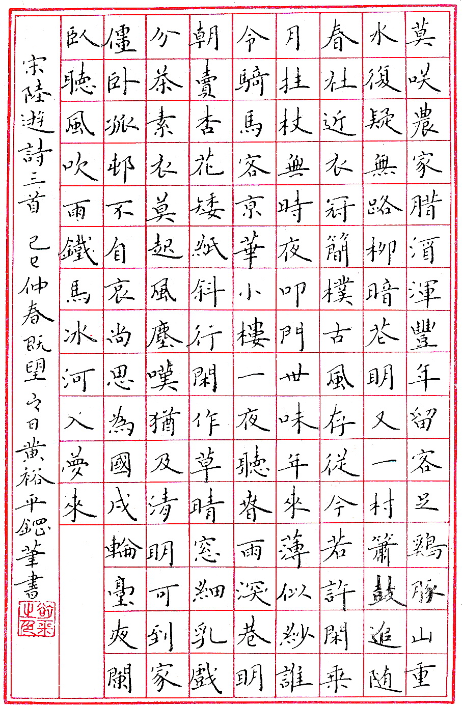 黄裕平钢笔录陆游诗三首(来源:《钢笔圆珠笔正楷字帖》)