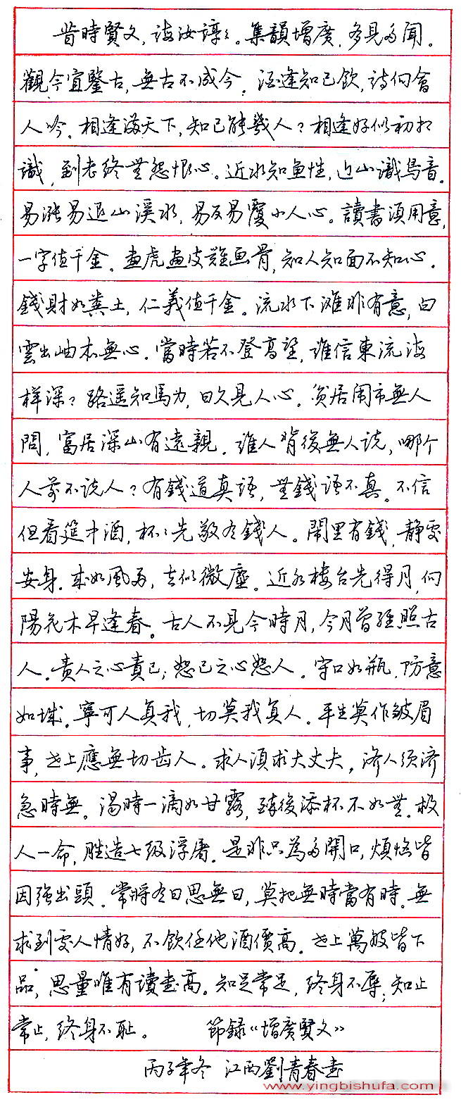 刘青春硬笔节录增广贤文(来源:《中国钢笔书法》杂志)