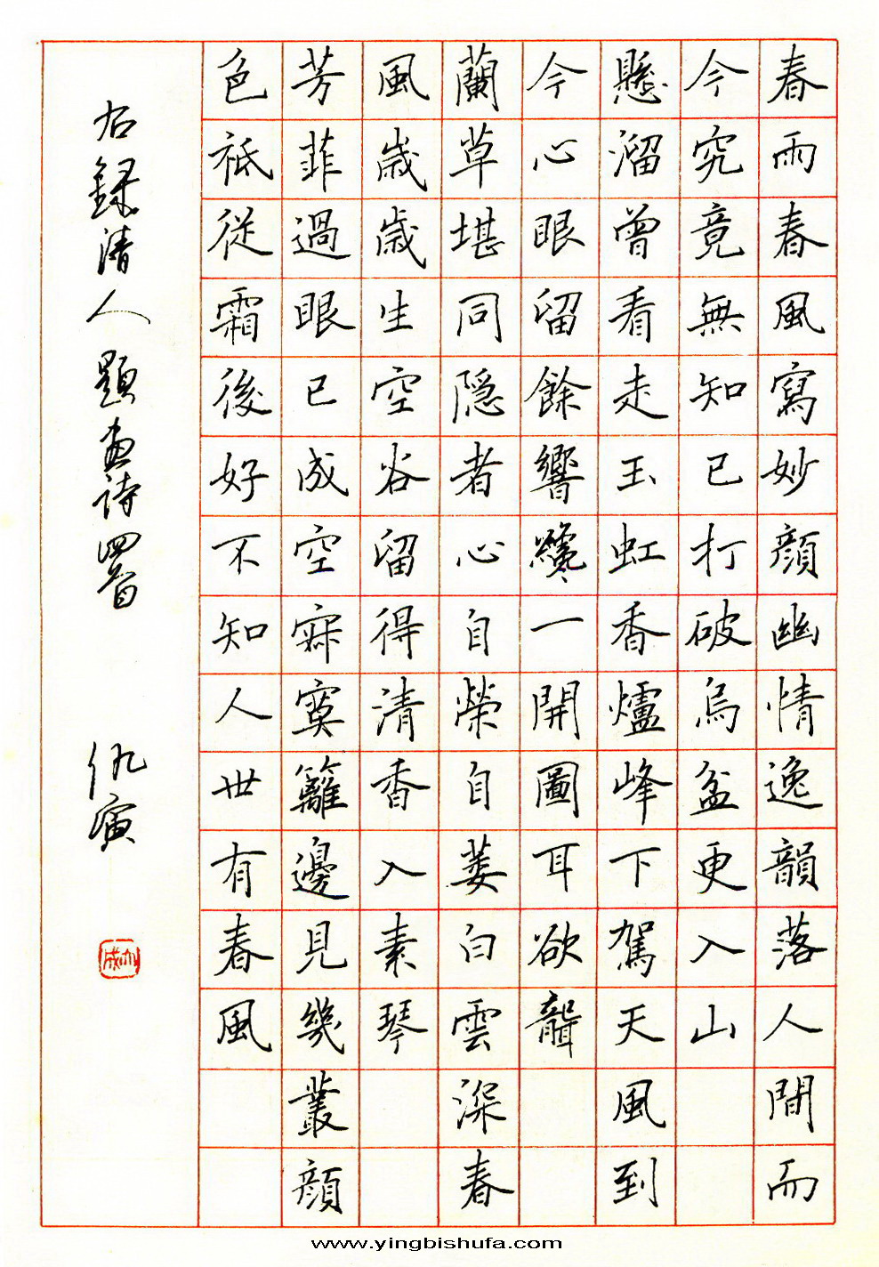 仇寅硬笔楷书清人题画诗四首(来源:《中国钢笔书法杂志作品精选》)