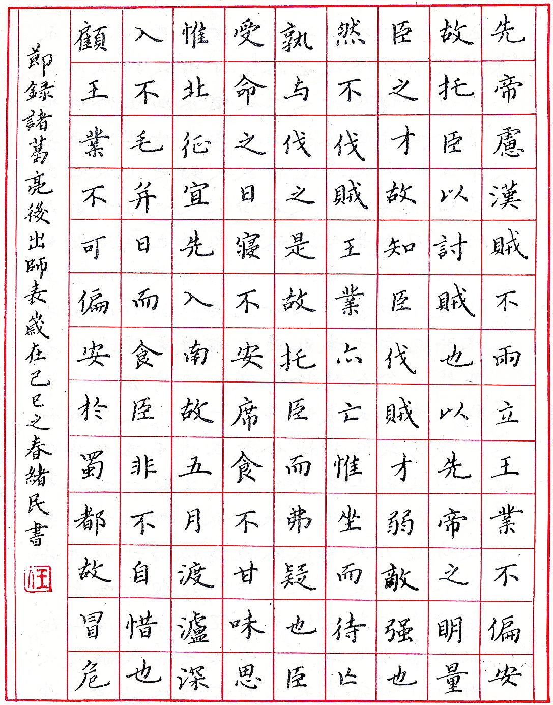 任绪民钢笔录诸葛亮《后出师表》(来源:《钢笔圆珠笔正楷字帖》)
