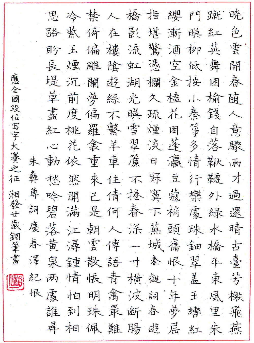 苏湘发钢笔录朱彝尊词(来源:《钢笔圆珠笔正楷字帖》)