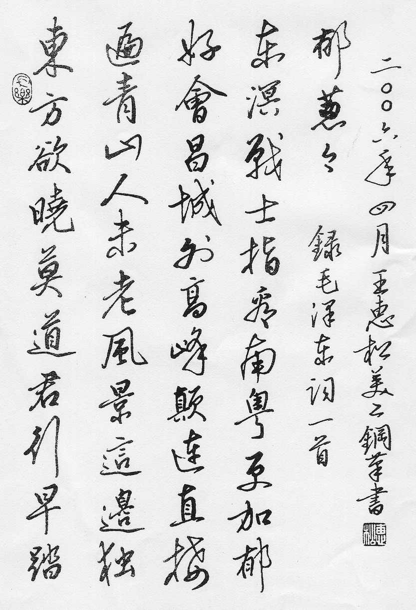 王惠松硬笔行书毛泽东诗词一首(来源:王惠松《美工钢笔行书速成》)