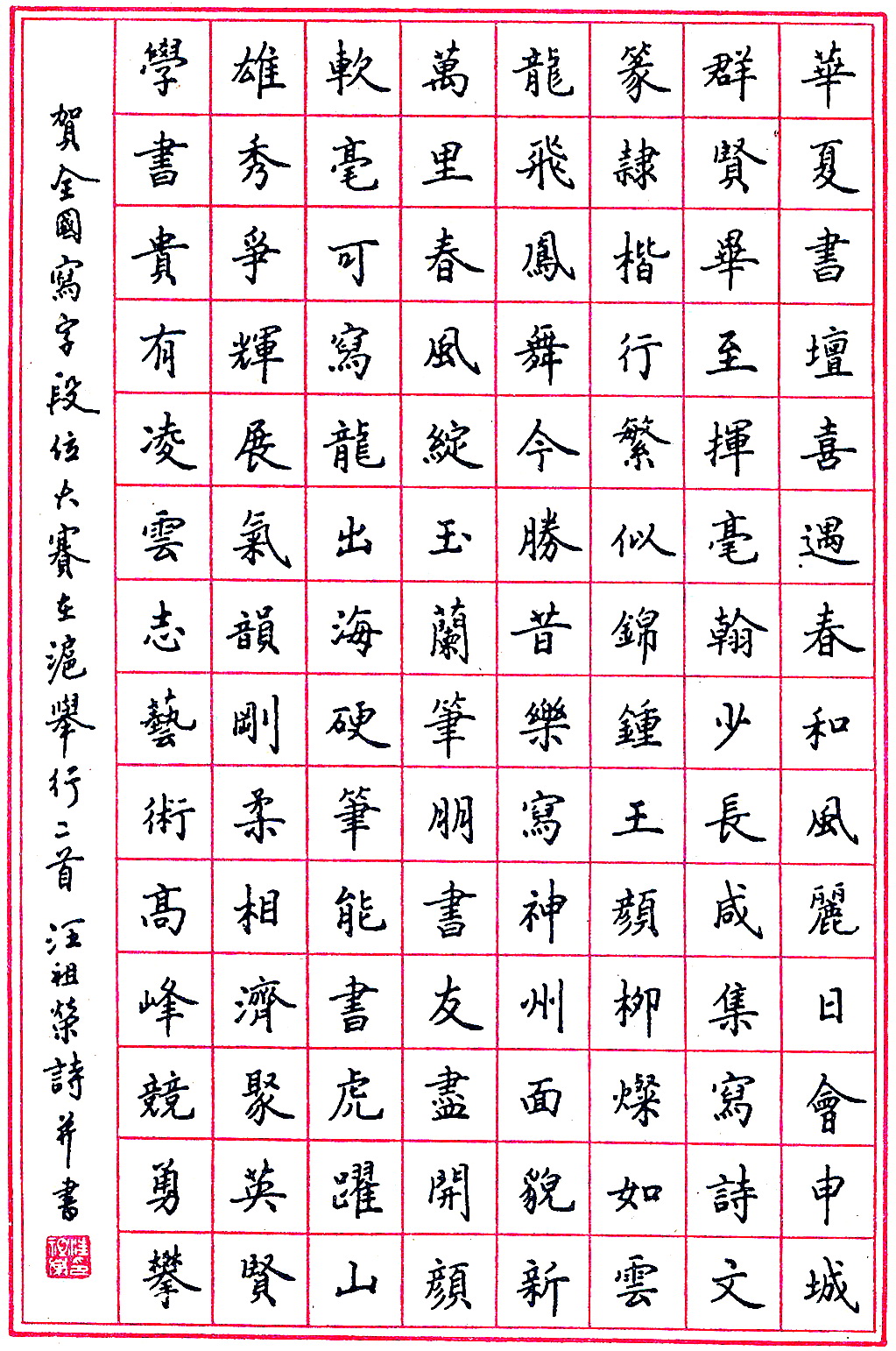 汪祖荣钢笔录贺诗二首(来源:《钢笔圆珠笔正楷字帖》)