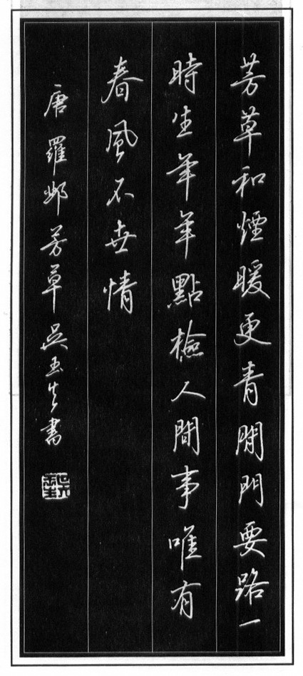 吴玉生硬笔行书罗邺诗芳草(来源:《千古绝句钢笔书法临摹字帖》)