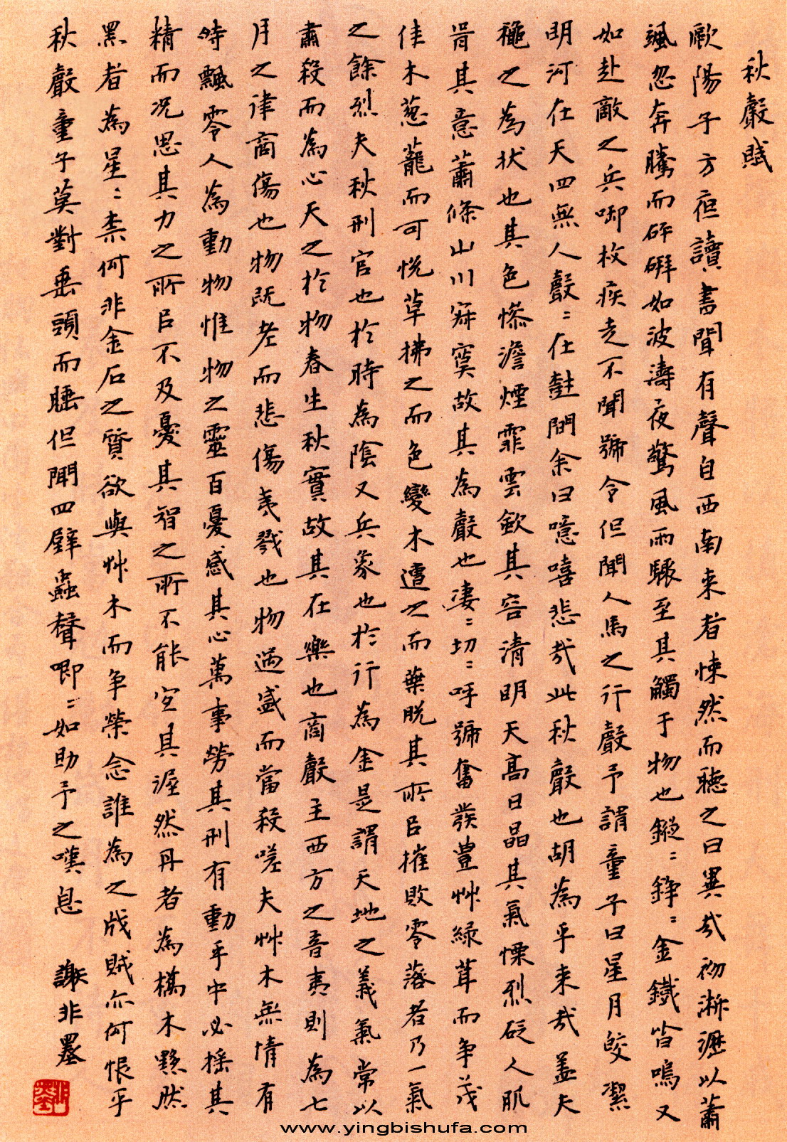 谢非墨硬笔楷书秋声赋(来源:《名人名家硬笔书法作品集》)