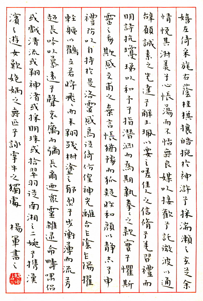 杨军硬笔楷书洛神赋(来源:《中国钢笔书法杂志作品精选》)