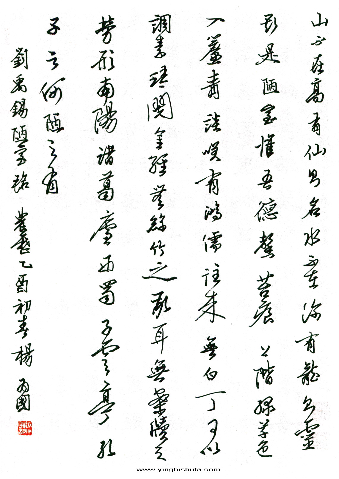 杨为国硬笔行书刘禹锡陋室铭(来源:《名人名家硬笔书法作品集》)