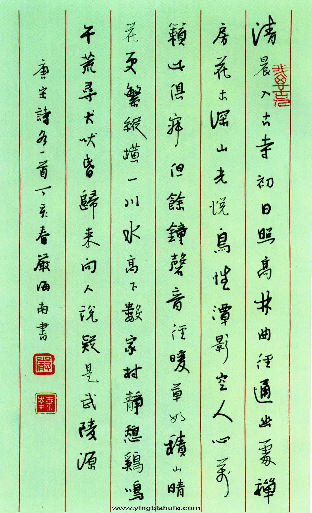 严海南硬笔行书唐宋诗各一首(来源:《延兴杯哈尔滨市第二届硬笔书法大展暨全国名家作品邀请展作品集》)