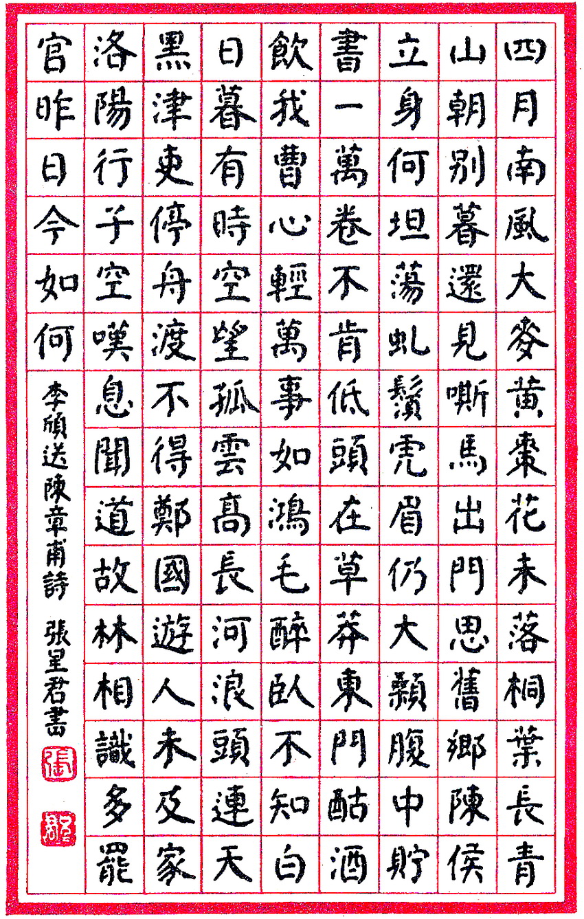 张呈君钢笔录李颀诗(来源:《钢笔圆珠笔正楷字帖》)
