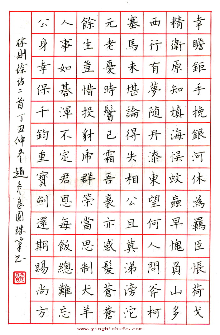 赵彦良硬笔楷书林则徐诗二首(来源:《当代中国硬笔书法21家》)