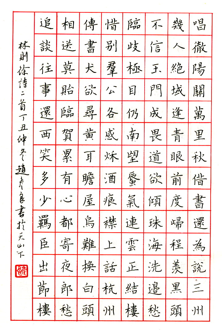 赵彦良硬笔楷书林则徐诗二首(来源:《当代中国硬笔书法21家》)