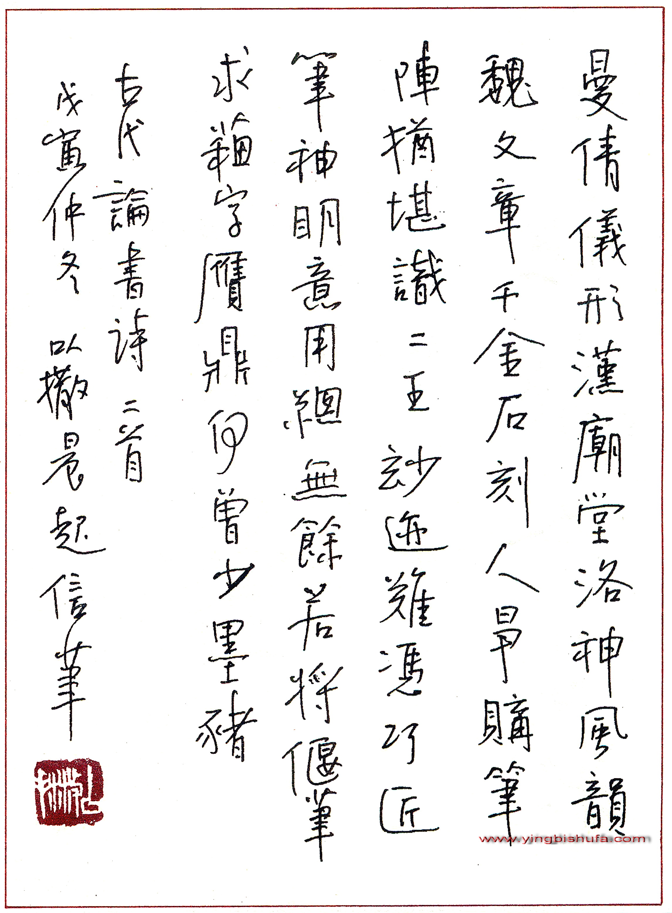 朱以撒硬笔行书古代论书诗二首(来源:《中国钢笔书法》杂志)