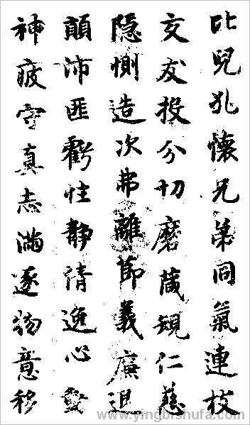 充实饱满:指字中间部分的笔画写得大方利落,毫不犹豫。初学时,包围结构、上中下结构、左中右结构的字,容易写得中间小,笔画细,注意附帖中“同”、“匪”、“廉”等字的中间部分。