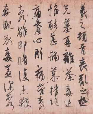 此帖为行草墨迹(响拓本)白麻纸,纵28.7厘米,横63厘米,藏日本皇宫。 此帖早在唐时就传入日本,或谓鉴真和尚东渡时带去。《丧乱帖》八行,同《二谢帖》五行、《得示帖》四行共摹于一纸。上有梁徐僧权、姚怀珍签押和日本恒武天王延历(782~805)年号三郎。此三帖内容均为书简,摹填精良。《丧乱帖》反映了丧乱时期痛苦不安的情绪,因无意于书,故书法越见自然。用笔结字与《兰亭序》比较,略带古意,有些专家推断此种体式的字应更近王羲之书法的本来面貌,所以成为研究王羲之书风的重要材料。