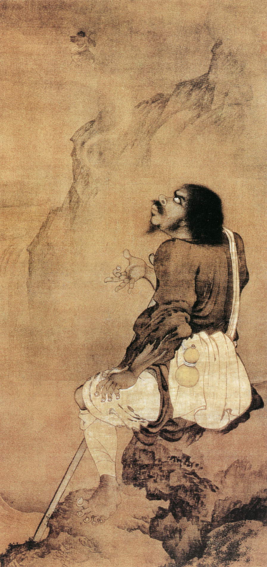 【名称】元 颜辉 铁拐仙人像 【年代】元代 【简介】绢本设色,纵191.3厘米,横79.8厘米。日本知恩寺藏。