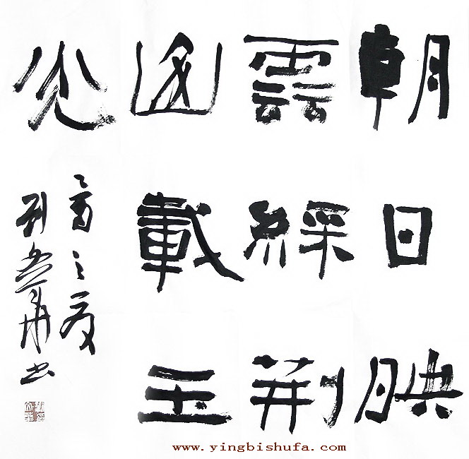 刘文华:隶书朝日映云彩荆山载玉光